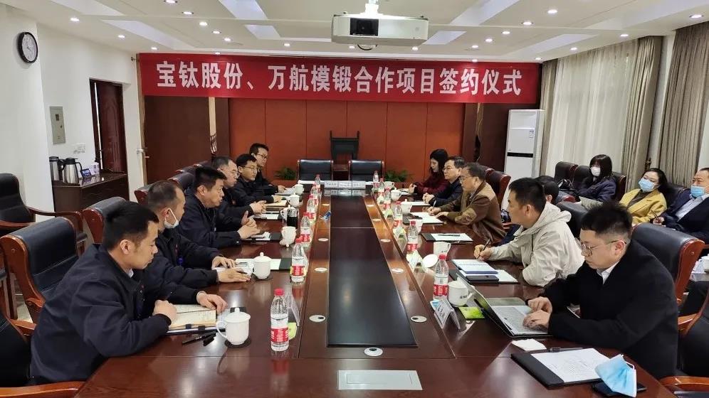 近日,寶鈦股份、萬航模鍛舉行合作項(xiàng)目簽約儀式。寶鈦股份總經(jīng)理、總工程師賈栓孝,副總經(jīng)理張延生;中國二重總經(jīng)理助理,萬航模鍛黨委書記、董事長(zhǎng)毛天宏,萬航模鍛黨委副書記、總經(jīng)理馮彥成等出席簽約儀式。