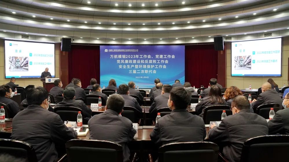 1月6日,萬航模鍛召開2023年工作會、黨建工作會、黨風(fēng)廉政建設(shè)和反腐敗工作會、安全生產(chǎn)暨環(huán)境保護工作會、三屆二次職代會。公司領(lǐng)導(dǎo)班子成員參加會議,國機重裝外派董事、監(jiān)事,航空工業(yè)駐二重代表室負(fù)責(zé)同志應(yīng)邀出席會議。會議由公司黨委委員、副總經(jīng)理康峰主持。