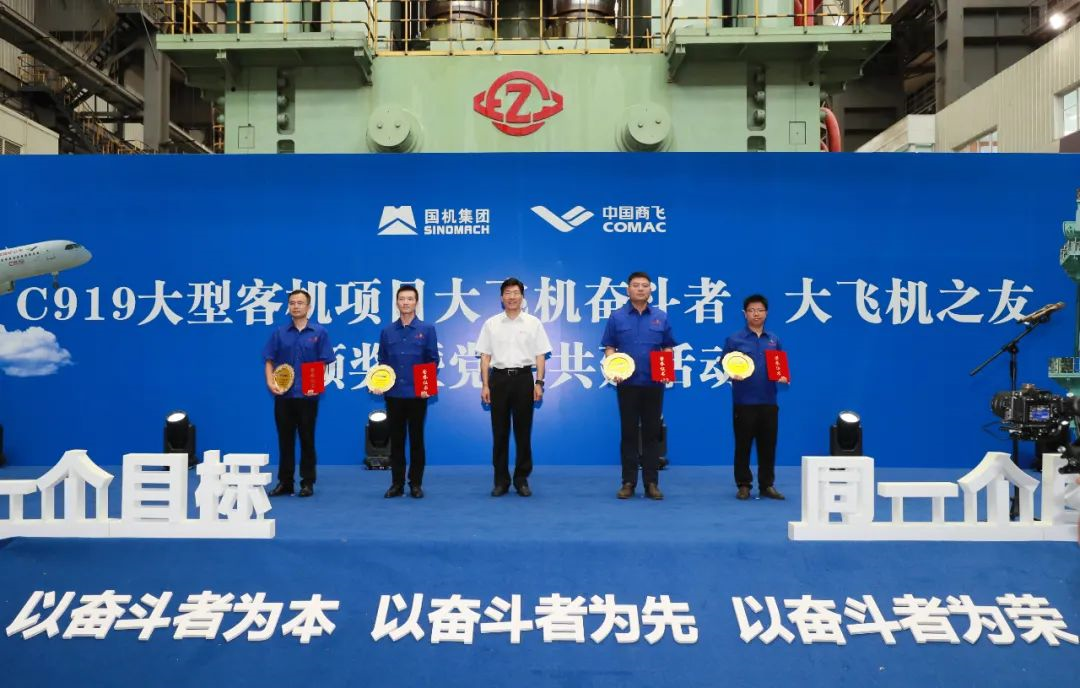 8月11日,C919大型客機(jī)項(xiàng)目“大飛機(jī)奮斗者”、“大飛機(jī)之友”頒獎暨黨建共建活動在國機(jī)集團(tuán)下屬企業(yè)中國第二重型機(jī)械集團(tuán)有限公司(以下簡稱“中國二重”)8萬噸模鍛壓力機(jī)生產(chǎn)現(xiàn)場舉行。國機(jī)集團(tuán)4名個人、1個團(tuán)隊(duì)榮獲C919“大飛機(jī)奮斗者”和“大飛機(jī)之友”殊榮。