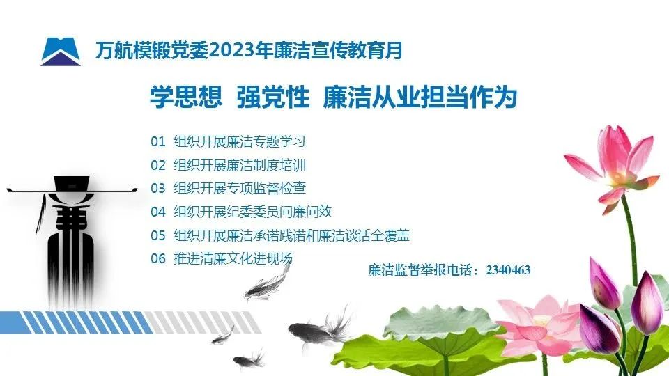 萬航模鍛黨委2023年“廉潔宣傳教育月”全面啟動。