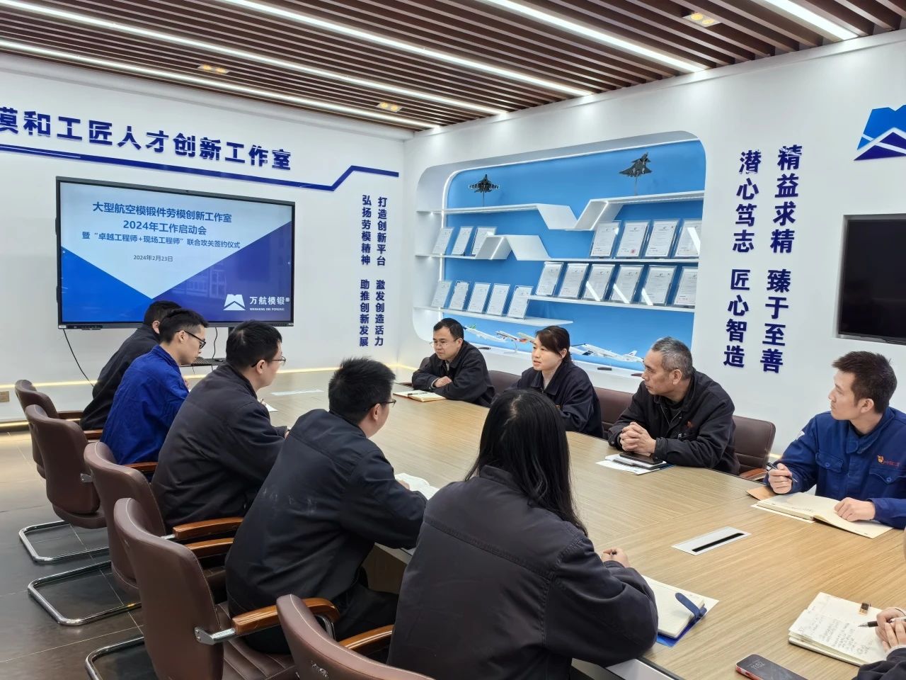 近日,萬航模鍛大型航空模鍛件勞模創(chuàng)新工作室舉行“卓越工程師+現(xiàn)場工程師”聯(lián)合攻關(guān)項(xiàng)目簽約儀式。4項(xiàng)聯(lián)合攻關(guān)項(xiàng)目簽約。