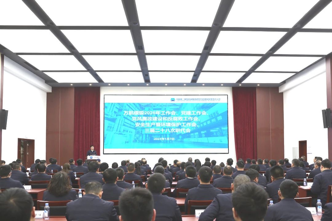 1月7日,萬航模鍛召開2025年工作會(huì)、黨建工作會(huì)、黨風(fēng)廉政建設(shè)和反腐敗工作會(huì)、安全生產(chǎn)暨環(huán)境保護(hù)工作會(huì)、三屆二十八次職代會(huì)。公司領(lǐng)導(dǎo)班子成員參加會(huì)議,國(guó)機(jī)重裝外派董事、監(jiān)事,駐企相關(guān)單位負(fù)責(zé)同志應(yīng)邀出席會(huì)議。會(huì)議由公司黨委委員、副總經(jīng)理蔣佳君主持。