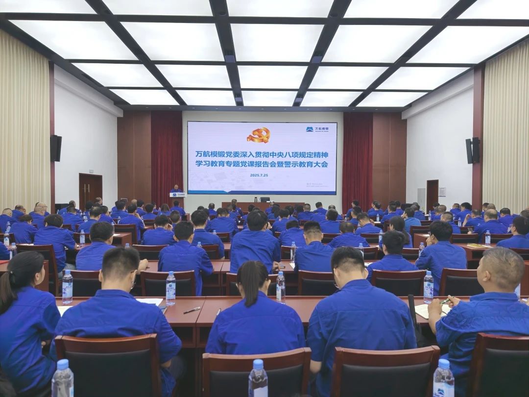 7月25日,萬航模鍛黨委召開深入貫徹中央八項(xiàng)規(guī)定精神學(xué)習(xí)教育專題黨課報(bào)告會(huì)暨警示教育大會(huì)。中國(guó)二重黨委委員、副總經(jīng)理,萬航模鍛黨委書記、董事長(zhǎng)向彪以《以永遠(yuǎn)在路上的恒心和韌性,一刻不停推進(jìn)作風(fēng)建設(shè)》為題作專題黨課報(bào)告,并開展警示教育。萬航模鍛黨委委員、副總經(jīng)理張鵬主持會(huì)議。