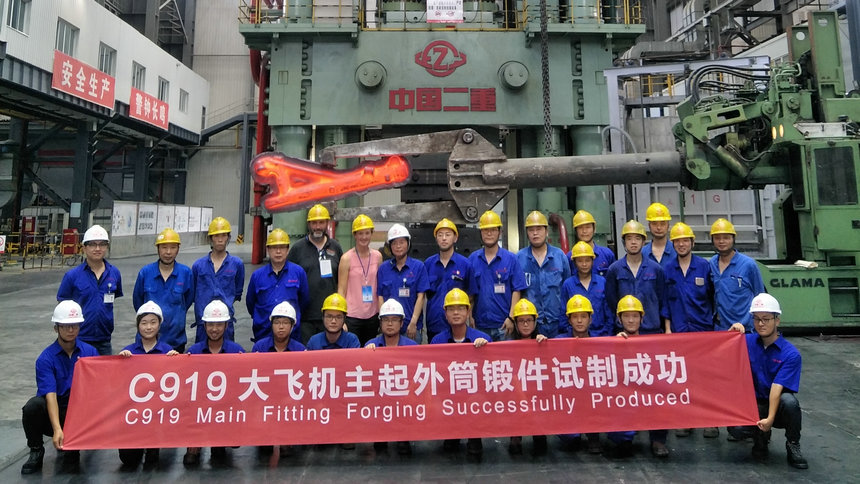 2018年7月21日,二重萬航公司承擔(dān)的C919大飛機(jī)主起外筒鍛件成功通過中國商飛、德國利勃海爾公司技術(shù)和質(zhì)量專家為期10天的聯(lián)合現(xiàn)場(chǎng)審核,C919大飛機(jī)國產(chǎn)化研制工作取得重大突破。